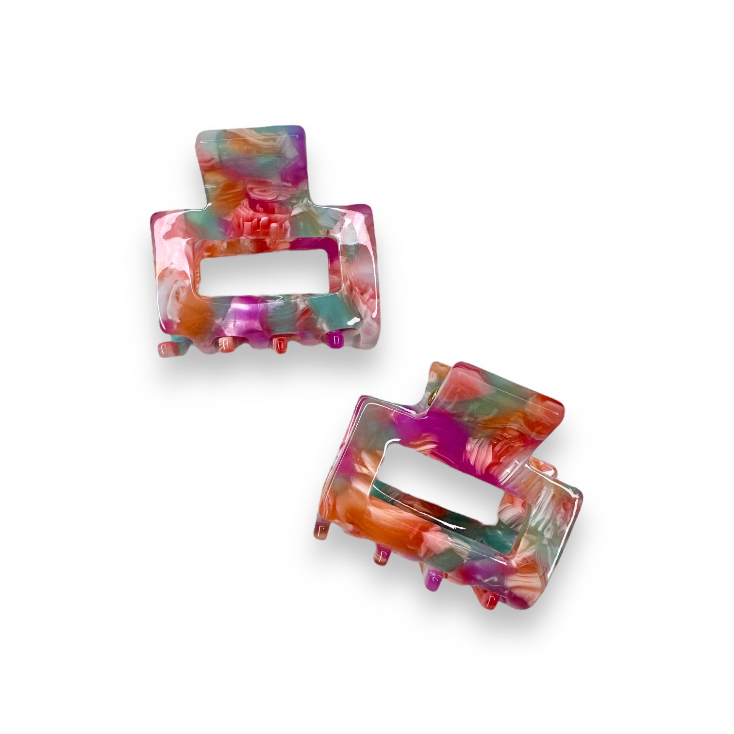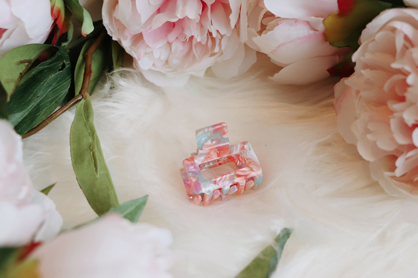 Please Note: All of our claw clips are assembled by hand. You may see slight variations in the way the teeth are set or the placement of our logo. Our clips are made in small batches so pattern placement and colours will also vary.