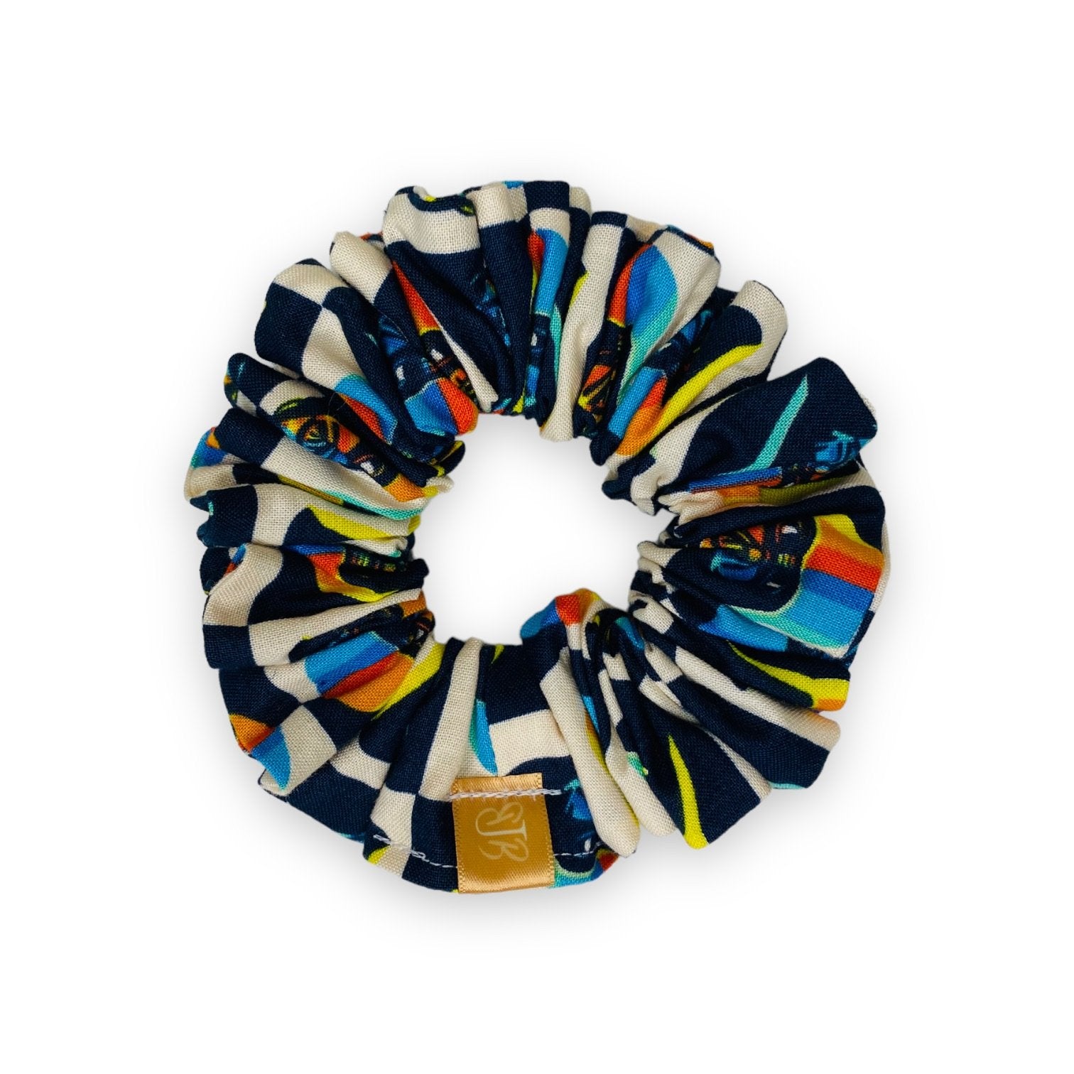 A ponytail with a twist. This scrunchie features a classic silhouette while still maintaining a full ruffled look.
