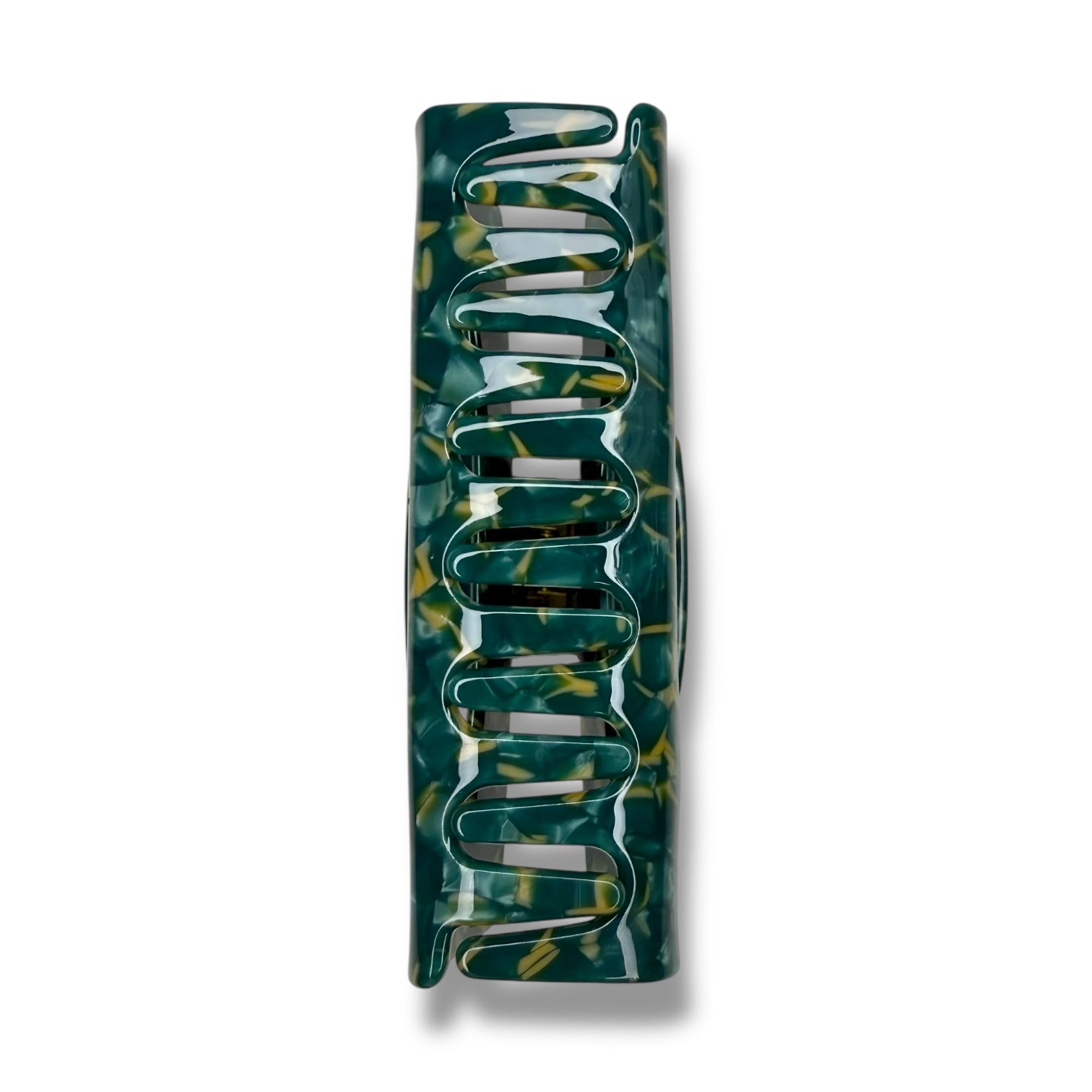 Please Note: All of our claw clips are assembled by hand. You may see slight variations in the way the teeth are set or the placement of our logo. Our clips are made in small batches so pattern placement and colours will also vary.