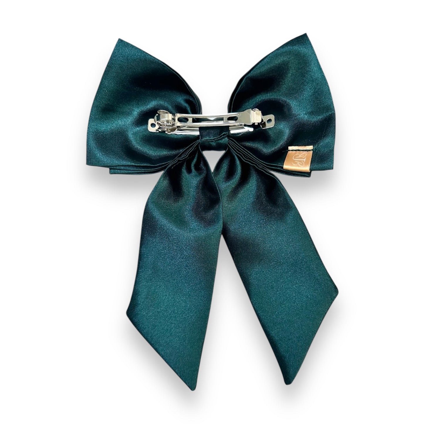 This bow is the perfect blend of structure and charm. The second bow adds an extra touch of luxury in both look and feel. Perfect for everyday use and all hair types. This bow features a french barrette clip on the back for easy securing to any hairstyle.