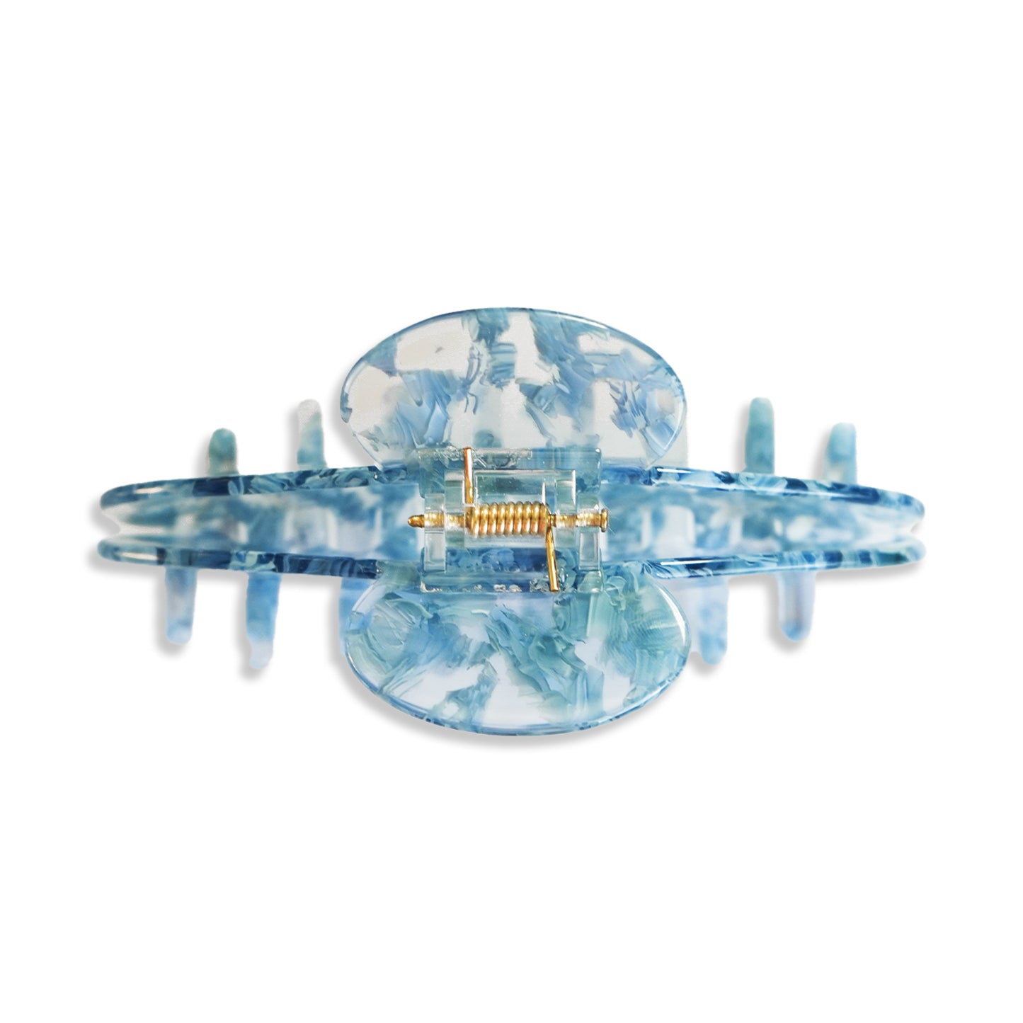 Please Note: All of our claw clips are assembled by hand. You may see slight variations in the way the teeth are set or the placement of our logo. Our clips are made in small batches so pattern placement and colours will also vary.